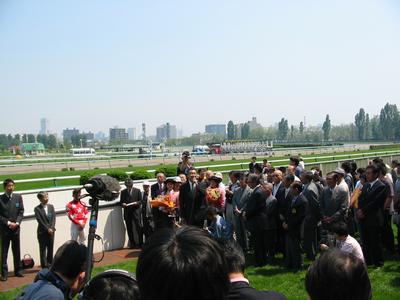 コスモバルク号 壮行会で場内から盛大な拍手(札幌競馬場 5月27日)