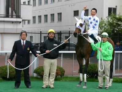 桑村真明騎手 初勝利 2005.05.24 今年デビューした桑村真明騎手(中村厩舎)が本日 第8Rシャンハイビジン号に騎乗し初勝利をあげた。 スタートから積極的にハナに立ちレースを進め、 最後の直線ではチェリーキングに迫られるもそのま ま押し切った。デビューして1ヶ月なかなか勝つこ とが出来ずプロの厳しさを感じていた中での嬉しい 初勝利となった。 これをきっかけに、今後さらなる活躍が期待される。