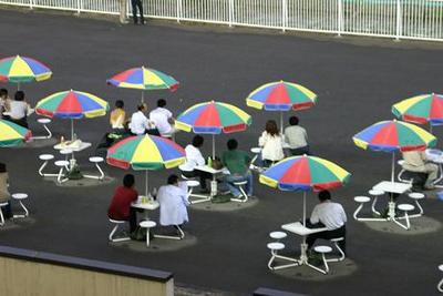 8月22日(火)より、ファン感謝イベントとして旭川競馬場スタンド前に設置しているパラソルのテーブル30台をホッカイドウ競馬所属騎手30名の『ジョッキーシート』と名付け、各シートに騎手のプロフィール、勝負服の絵柄を入れたカードを貼付しました。