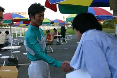 齊藤騎手は、当選者の一人一人にサイン色紙などをプレゼントしました。