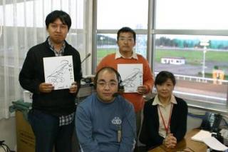 二人は実況放送室で古川アナウンサー、ホースニュース馬社の前田洋トラックマンが担当したパドック解説と小枝アナウンサーのレース実況を観戦、また、検量室での見学も行い、騎手の検量風景を見学しました。