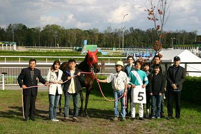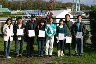 7名は第7レースの優勝馬ホットロード、米川伸也調教師、川島雅人騎手らと一緒に口取り写真に参加しました。
