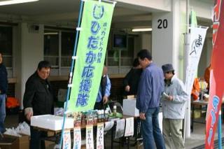 ひだか特産市 2006.10.19 10月19日、札幌競馬場で、競走馬のふるさと日高から旬の新鮮野菜や水産物、特産品の販売が行われました。 販売されたのは、トマト、きゅうり、米、長ねぎ、生しいたけ、昆布ドレッシング、平取和牛カレー、馬人(うまんちゅ)Tシャツなど。 産地直送の特産物に競馬場を訪れたファンは、大にぎわいでした。