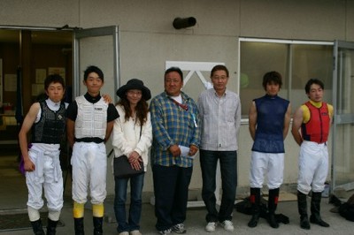 下:岩橋騎手、小平騎手、亀井騎手、沼澤騎手と記念撮影