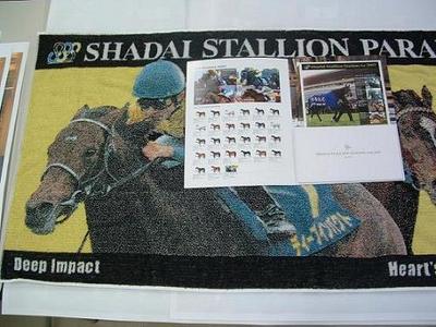 7月19日(木)、いよいよ『スタリオン・プレミアムシリーズ』第一弾「ディープインパクト・プレミアムⅠ」(サラ3歳以上オープン 1600m 1着賞金 2、500,000円)がおこなわれます。これを記念してディープインパクトをデザインしたオリジナルバスタオルを2名様に、ディープインパクトの切手とポストカードのセットを1名様にプレゼントいたします。