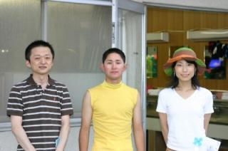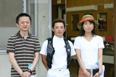 下:実況放送席に座り記念撮影
