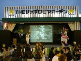 大通りビアガーデンサッポロビール会場でPRイベントを実施 2007.07.27 7月26日(木)大通ビアガーデン「サッポロビールイベント会場」にてホッカイドウ競馬PRイベントが実施されました。 会場にはホクトくんも登場しホッカイドウ競馬のPRやクイズ大会でが行われ、また会場の大型スクリーンにはホッカイドウ競馬では初の取り組みとなる旭川ナイトレースのライブ映像が放映され、会場の中には事前に馬券を購入してきた方やスポーツ新聞片手に携帯で購入する姿もあり盛り上がりました。