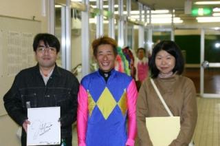 下:服部騎手との記念撮影(川本騎手が後ろでVサイン!?)