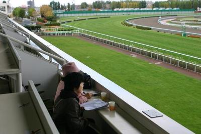 第3回 馬主席へのご招待 実施! 2007.10.30 10月30日、札幌競馬場において、一般ファンを対象とした「馬主席へのご招待」が行われ、ファン2名が参加しました。 2名は競馬場馬主室に入り、3階馬主専用スタンドから第5・6レースを観戦し、ひとときの馬主気分を味わいました。 写真 上:馬主室で記念撮影 下:馬主専用スタンドから競馬観戦