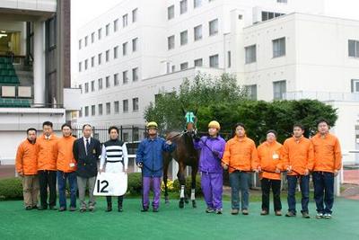 第22回 優勝馬との写真撮影体験! 2007.11.01 11月1日、札幌競馬場で「第22回 優勝馬との写真撮影体験」が行われ、浦河町4Hクラブのメンバーが写真撮影を行いました。 参加者は、第6レースの優勝馬バンブーエルトリ、林和弘調教師、宮崎騎手らと口取り写真に参加しました。 写真:優勝馬バンブーエルトリとの口取り写真