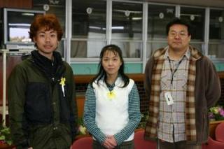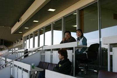 第4回 馬主席へのご招待 実施! 2007.11.06 11月6日、札幌競馬場において、一般ファンを対象とした「馬主席へのご招待」が行われ、ファン3名が参加しました。 3名は競馬場馬主室に入り、3階馬主専用スタンドから第5・6レースを観戦し、応援している馬が勝利すると歓声をあげていました。 写真 上:専用スタンドから観戦! 中:馬主室で記念撮影 下:馬主室前で記念撮影