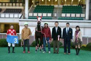 上:優勝馬リバーストーンと一緒に記念撮影