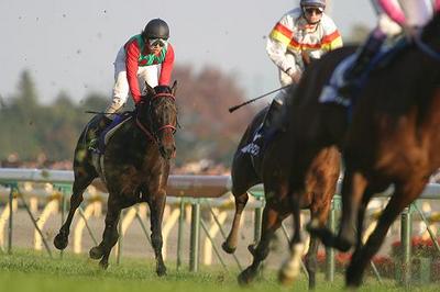 4度目のジャパンカップ、バルクは13着 2007.11.25 11月25日(日)東京競馬場で実施された第27回ジャパンカップ(GⅠ)にホッカイドウ競馬からコスモバルクが出走、今回は松岡騎手(JRA)とのコンビで4度目のジャパンカップ挑戦となりました。レースはチョウサンがハナに立ちコスモバルクは2番手の好位置でレースが進みましたが、最後の直線ではいつもの伸びが見られず13着でした。 写真提供:日高軽種馬振興対策推進協議会 神谷健介氏 (上:1コーナー 下:ゴール後)