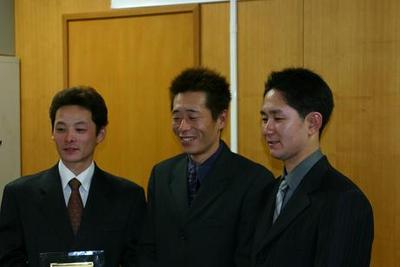 上:『リーディングジョッキー賞』を受賞した五十嵐騎手・服部騎手・佐々木騎手