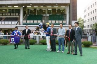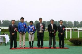 中:優勝インタビューを受ける三井騎手