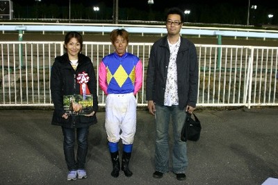 優勝馬ナムラビスマルクの原孝明調教師(馬主代理)と服部茂史騎手にそれぞれ記