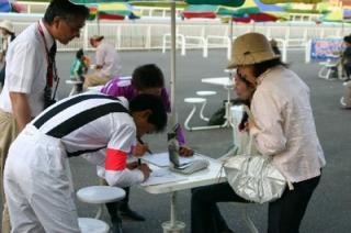 パラソルのテーブル30台を、ホッカイドウ競馬所属騎手25名の『ジョッキーシート』