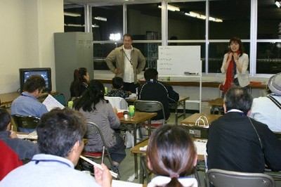 家族で楽しむ秋のケイバ講座を実施!! 2008.09.23 9月23日旭川競馬場で『家族で楽しむ秋のケイバ講座』が行われました。 講師にはAir-G パーソナリティーの花園ゆきさんと、競馬ライターの村本浩平氏をむかえ、 競馬雑学講座やプレゼントも当たる競馬ゲームの他、普段立ち入ることのできないバックヤードツアーを実施致しました。 参加者24名は、講師のお話やパドックなどを見学し充実したケイバ講座を送りました。 写真 上:ケイバ講座の模様 下:パドックの見学
