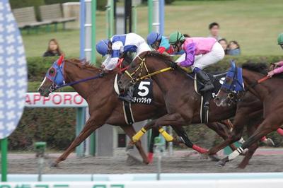 10月5日 JRA札幌競馬場で行われたすずらん賞(サラ系2歳OP 1200m芝・右 晴・良)に道営のスターホース「ハートの流星」マサノウイズキッド号が出走いたしました。芝初挑戦となるこのレース。スタートでダッシュが効かなかったマサノウイズキッドは後方からのレースとなってしまいました。上がりこのレース最速(36.3)の脚をつかい3コーナーから追い上げましたが、1着から1馬身半程の5着に敗れました。前走抜群の芝適正をみせ快勝したイナズマアマリリス号は中団で折り合いクビ差の2着に敗れましたが、改めて安定した芝での能力を披露しました。