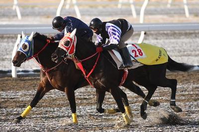 一方、チョットゴメンナ&マサノウイズキッドは2頭での豪華併せ馬。先行するチョットゴメンナ(小国騎手)に残り5Fでマサノウイズキッド(小嶋騎手)が並びかけて一気に加速、手応えではマサノウイズキッドが少し優勢に見えましたが、追い切りと実戦時だけブリンカーを着用するチョットゴメンナが最後まで抜かせず“ハナ差”先着。中身の濃い最終追い切りとなりました。