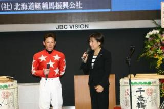 模擬レース終了後には、昨年のリーディングジョッキー五十嵐冬樹騎手が、インタビューに答える一幕もあり、関係者一丸となって5月20日から「グランシャリオナイター」の成功を誓いました。
