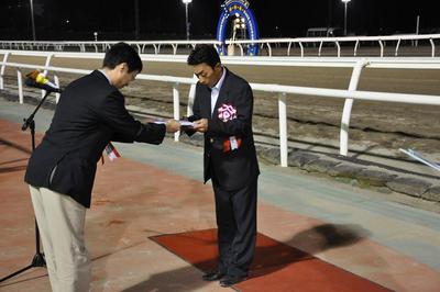 また、表彰式では、優勝馬タグハンター号の馬主田口廣氏(代理松本隆宏調教師)にタップダンスシチー号の2010年度種付権利が贈呈されました。