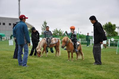 「とねっこ広場」でミニチュアホース・ポニー試乗会を実施 2009.06.18 6月18日(木)、「とねっこ広場」特設スペースでミニチュアホース・ポニーと触れあえることができる「ミニチュアホース・ポニー試乗会」が新冠町の乗馬施設「遊馬ランド グラスホッパー」のご協力により実施となりました。4頭のミニチュアホース・ポニー(ジョンレノン号、ムーミン号、大治郎号、ボレノ号)が来場者をお出迎えし、身近に触れあったり、乗馬体験をしたり馬産地らしいイベントとなりました。