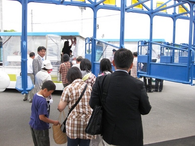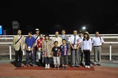 8月11日(火)、胆振軽種馬農業協同組合中・西部振興会様のご支援・ご協力により「ホッカイドウ競馬グランシャリオナイター観戦ツアー」が実施され、40名の参加者が門別競馬場に来場しました。午後3時にJR苫小牧駅北口を出発し、途中、苫信新聞支店前・沼ノ端新栄公園前を経由して、午後4時に門別競馬場へ到着。到着後は、キャロットのバケツジンギスカンやホッカイドウ競馬パドック解説者としておなじみの古谷剛彦さんの予想解説など、グランシャリオナイターを楽しみました。また、協賛競走である第8レース「ナイター競馬ほのぼの観戦ツアー特別」では、参加者の中から表彰式のプレゼンターを務めていただきました。