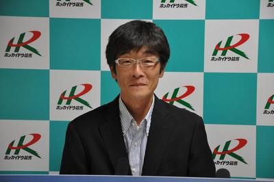 第11レース、日高こんぶ特別のパドック解説には、社台ファーム岩倉昌志氏に出演していただき、日高町の日高社台ファームの役割やグランシャリオナイターの感想など話していただきました。