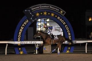 10月22日(木)、2歳牝馬による交流重賞第12回エーデルワイス賞(JpnⅢ)[ダンスインザダーク賞](1200m 曇 良)が開催され、JRA武豊騎手騎乗のホッカイドウ競馬所属馬オノユウ号が、2着のクラキンコ号に1馬身1/2差をつけて優勝。単勝1番人気に応えました(1分14秒2)。