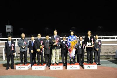 同馬は、7月7日(火)栄冠賞(H2)、9月22日(火・祝)フローラルカップ(H3)に続き重賞3勝目。管理する角川秀樹調教師は、昨年のアンペア号に続き2年連続の優勝となりました。