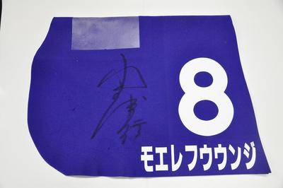 第10回イノセントカップ(H3)優勝馬モエレフウウンジ号の馬主中村和夫様のご提供により、優勝ゼッケン(小国博行騎手サイン入り)を抽選で1名様にプレゼントいたします。