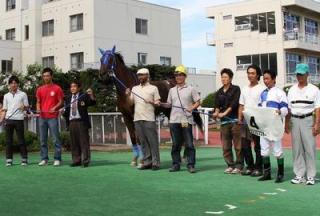 最後の直線に入り、先行していた道営勢2頭にJRAイーグルカザン号とケイアイカイト号が追い込み、イチバンボシ号はかわされ4着、ラスワロフスキー号が逃げのこり2着馬に1馬身3/4の差をつけ優勝しました(走破タイム 0.59.7)。