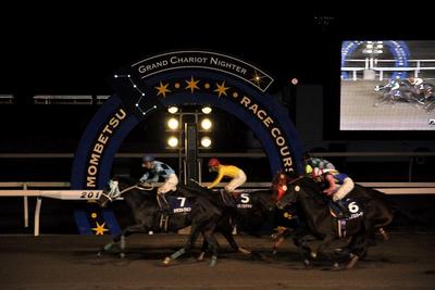 11月18日(木)、今年最後の大一番、第53回 道営記念[シンボリクリスエス賞]が行われ、小国博行騎手騎乗のオネストジョン号(堂山芳則厩舎)が2着コパノカチドキ号に1/2差をつけて優勝しました(優勝タイム2.07.0)。