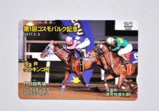 ダービーウイーク2011の開催を記念して、昨年の第38回北海優駿(ダービー)を優勝したクラキンコ号のオリジナルクオカードを抽選で10名様にプレゼントいたします(第1回コスモバルク記念優勝時)。ご提供:倉見利弘様