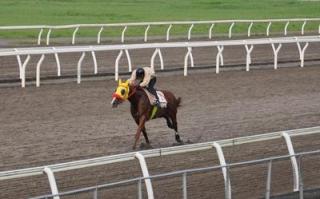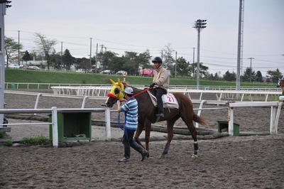 9月19日(月祝)JRA札幌第11競走エルムステークス(GⅢ 1700m ダート・右)に出走予定のホッカイドウ競馬ダイワルビア号(牡7 堂山芳則厩舎)の直前追い切りが、本日、門別競馬場(外走路 曇・重)で行われました。