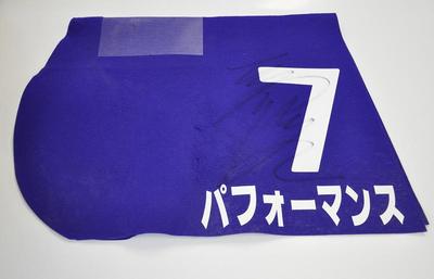第6回道営スプリント(H2)[ゴールドアリュール賞]優勝馬パフォーマンス号の馬主野島春男様のご提供により、レース使用ゼッケン(川島洋人騎手サイン入り)を抽選で1名様にプレゼントいたします。