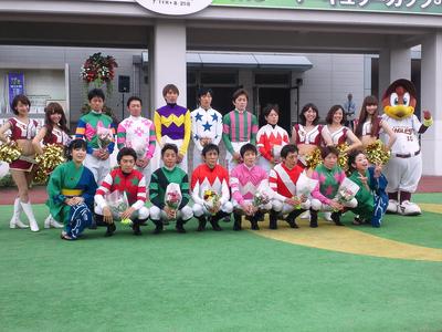 写真中・下:ジョッキーズチームマッチ第1戦『絆』直線(最内)、レース後
