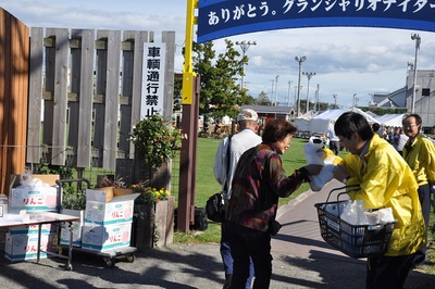 「秋の収穫祭」&「全道Aiba祭」(2日目) 2013.09.26 本日の門別競馬場では、「秋の収穫祭」2日目として、門別競馬場では開門と同時に余市町産「YES!clean りんご」を先着100名様にプレゼントしました。また、ひだか特産市として、石狩鍋の販売や日高の特産品の販売。そして、本日限定イベントとして、カボチャ、じゃがいも、にんじんなど自家栽培野菜の販売などが行われました そして、場外発売所では、「全道Aiba祭」として、先着来場者プレゼントや抽選でのプレゼントなど行われました。