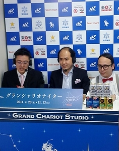 よしもと人気芸人!お笑いライブ&パドックゲストに登場! 2014.04.29 本日、春のケイバまつりでよしもと人気芸人「トレンディエンジェル」とホッカイドウ競馬応援大使「しろっぷ」によるお笑いライブ&トークが行われました。人気芸人とあって、大勢のお客様が駆けつけ、会場は笑いに包まれました。 また、トレンディエンジェルは第2競走のパドックゲストとしても登場し、春のケイバまつりを盛り上げていただきました。 写真上:パドックゲスト 写真中:お笑いライブ「しろっぷ」 写真下:お笑いライブ「トレンディエンジェル」