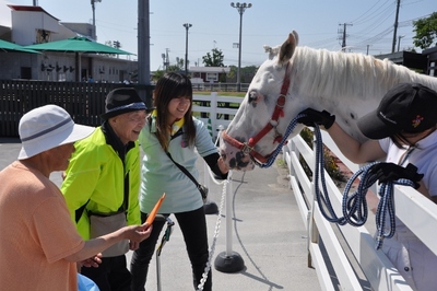 日高町内デイサービスが門別競馬場来場 2014.07.02 日高町内のデイサービス(ゼウス)の皆さんが門別競馬場に来場し、ジンギスカンを食べたり、テン太とのふれ合いを行い、ホッカイドウ競馬を楽しまれました。 職員の方 「去年も来ましたが、天気も良く、ジンギスカンがとてもおいしかったです。施設の人も喜んでいるので、毎年来たいと思います。」