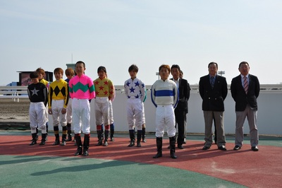 写真中:新人騎手・期間限定騎手紹介セレモニー