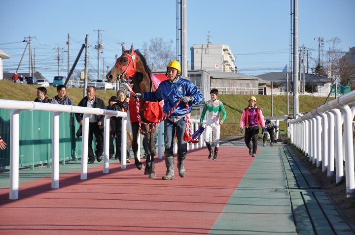 「3連勝と勢いに乗っていたので、重賞に手が届いてうれしかったです。スタートがあまり得意な馬ではないので後方から進めようと考えていました。3コーナーから4コーナーにかけて併せ馬の形で進めることができたことが大きかったですね。まだまだ遊んで走っているところがあるので、改善できればもっと強くなると思います。今後も応援して下さい。」