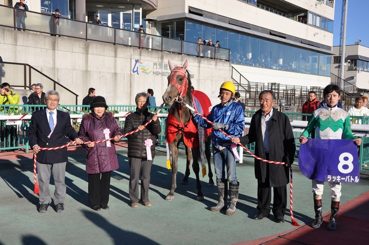 本日は第1競走から2歳牝馬による重賞競走、HBA賞 第3回 ブロッサムカップ【H3】[ダート1,600m(内) 晴・重]が行われ、2番人気ラッキーバトル号が2着リンダリンダ号に2馬身差をつけて優勝しました(タイム:R1.41.5)。