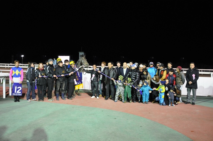 本日のメイン競走は、ホッカイドウ競馬のグランドフィナーレを飾る一戦、農林水産大臣賞典 第58回 道営記念【H1】[ダート2,000m(外) 晴・重]が行われ、1番人気グランプリブラッド号が2着ウルトラカイザー号に4馬身差をつけて優勝しました(タイム:2.05.1)。