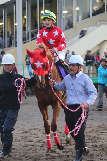 「1600mの距離も、遠征の競馬も初めてですからね。距離の面は心配してませんでしたが、勝ち馬が有利な枠順(最内㈰番)だったなかで頑張ってよく走っています。勝ち馬はあの枠だし、テンからハナに行くつもりで来てましたから。コース取りの差もあって負けてしまいましたが、仕方ないところでしょう。この後は、いったん北海道に戻ってから南関東に移籍する予定です」