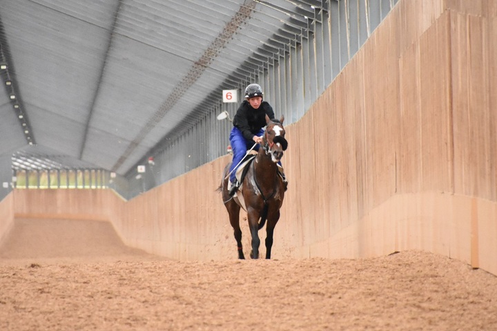 「タフなダートで確りと走れているのは、能力の表れでしょう。血統背景、脚捌きから、芝に替わってのプラスアルファは大きいと思っています。体調も申し分なく、勝ち負けの期待です。」