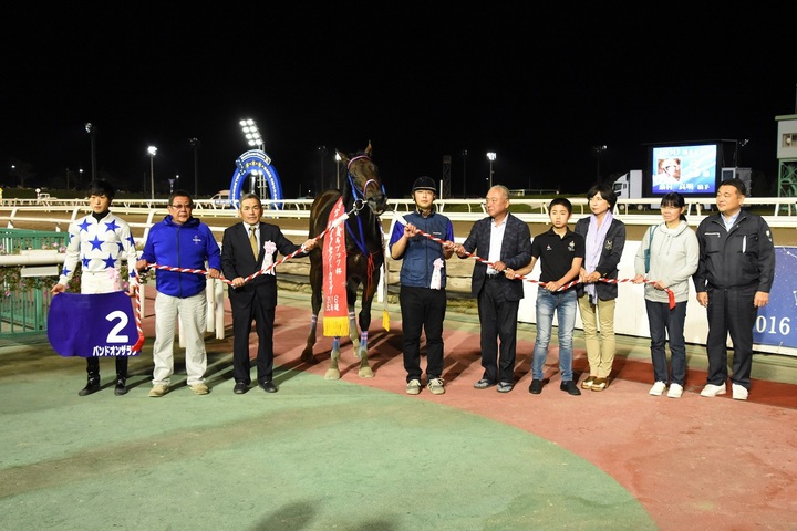 本日のメイン競走、競馬ブック杯 第16回 イノセントカップ 〔H3〕(エスケンデレヤ賞)[ダート1,200m (外) 晴・良]が行われ、1番人気バンドオンザラン号が2着ゴーリキ号に3馬身差をつけて優勝しました(タイム:1.14.7)。
