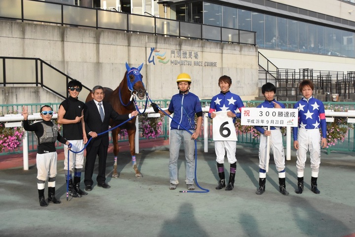 9月20日(火)、門別競馬 第2レースで阿部 龍(あべ りゅう)騎手(角川 秀樹きゅう舎所属)がスマイルアウェイ号に騎乗し、2,304戦目で地方・中央通算300勝を達成しました(ホッカイドウ競馬では現役14人目)。