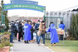 開門と同時に多くのお客様が来場し、場内ではイベントとして、新米おにぎり試食会、原木なめこ「日高の沢味」を使用したなめこ汁の無料ふるまい、北竜ひまわりライスなどのファンプレゼントが行われたほか、ハッピースプリント号が重賞競走で使用したゼッケンや騎手のサイン入りポスターが当たる「お楽しみ抽選会」や美唄焼き鳥「たつみ」の焼き鳥が当たる抽選会が実施され、場内が大変賑わいました。